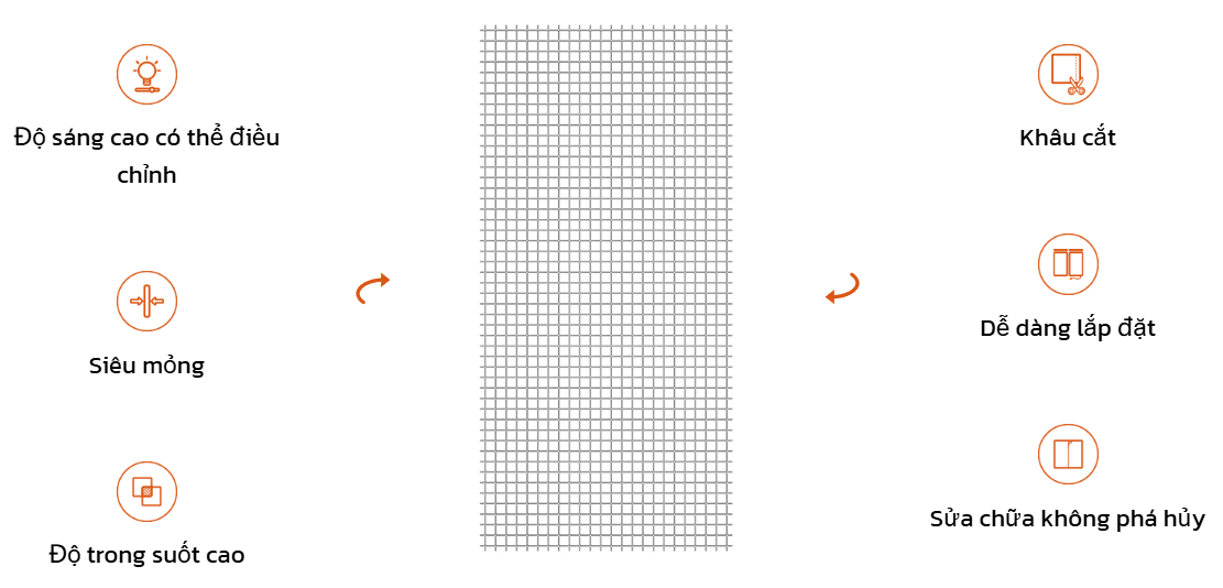 Công nghệ này biến các bề mặt kính thành nền tảng truyền thông sống động, cho phép trình chiếu thông tin thời gian thực, nghệ thuật thị giác và quảng cáo, đồng thời tích hợp hài hòa trong nhiều loại không gian kiến trúc khác nhau